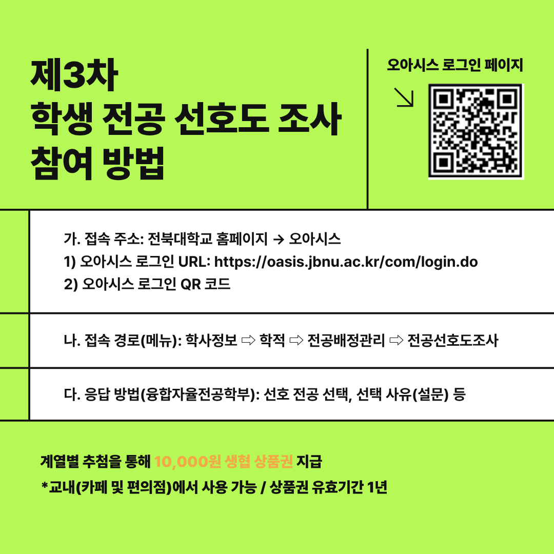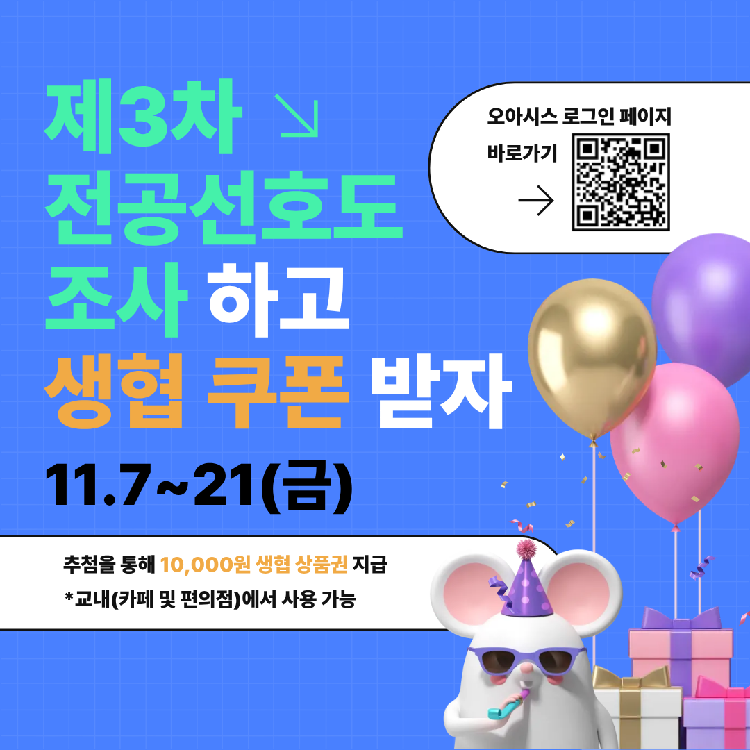 2025학년도 3차「전공 선호도조사」 답례품 이벤트 안내 (교내 사용 가능 생협 쿠폰 (10,000원))